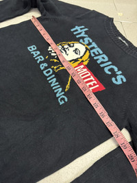 Authentic HYSTERIC GLAMOUR Dimension: Pit to Pit: 18" Length : 22.5" Sleeves: 24" Condition:9/10 Colour: 9/10 MATERIALS: 100% COTTON Defect : NULL ► All measurement are in INCHES. PLEASE READ WITH CARE BEFORE BUY Do not hesitate to contact me if you have any questions ● This is not a brand new product. ● All the details are in the photos. ● Any defects are as shown on the photos. ● Please expect few minor defects. ● Photos taken are genuine. No effect or editing is/was done. ● Color may be dissimilar due to sun/lighting. ● Please focus to details and measurement given. ● Make sure the measurement is balance with your wardrobe. RETURN POLICY Refund is applicable only to item that not match the description. Please check your size carefully because no refund can be made due to wrong size. Please send me a message if you have any question. SHIPPING AND CONDITIONS Accepted and most preferred payment is PAYPAL! For other payment methods contact me before buying! Your item will be shipped via DHL EXPRESS Tracking number will be given for free. Shipping cost includes handling and shipping cost Please contact me for any questions that you may have about this item and our transaction! If you have any problems during or after the transaction contact me first, without opening a case or leaving negative feedback, and it will be solved. Thanks for looking!