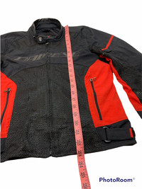 AUTHENTIC DAINESE BIKER JACKET RED AND BLACK PRE-OWNED DEFECT - NULL SIZE 44 / SMALL PIT TO PIT = 18.5” LENGTH = 25" SLEEVES: 26" PLEASE REFER TO THE IMAGES SHIPPING AND CONDITIONS Accepted and most preferred payment is PAYPAL! For other payment methods contact me before buying! Your item will be shipped via DHL EXPRESS. Shipping cost includes handling and shipping cost Please contact me for any questions that you may have about this item and our transaction! If you have any problems during or after the transaction contact me first, without opening a case or leaving negative feedback, and it will be solved. Thanks for looking!