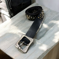 Designer - TIBERIO FERRETTI GARRISON STUDDED LEATHER BELT ENGRAVED