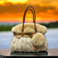 MONTEROSA CABLEKNIT SHEEPSKIN HANDMADE BIRKIN STYLE HANDBAG