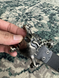 OAKLEY SKULL METAL BUCKLE LEATHER BELT