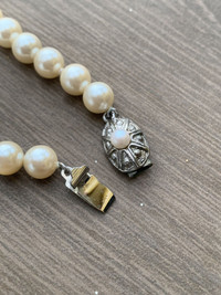 NATURAL PEARL 8" LENGTH SILVER HARDWARE 52 HIGH GRADE PEARLS Condition: 9.0/10 Colour: 9.0/10 ► All measurement are in INCHES. PLEASE READ WITH CARE BEFORE BUY Do not hesitate to contact me if you have any questions ● This is not a brand new product. ● All the details are in the photos. ● Any defects are as shown on the photos. ● Please expect few minor defects. ● Photos taken are genuine. No effect or editing is/was done. ● Color may be dissimilar due to sun/lighting. ● Please focus to details and measurement given. ● Make sure the measurement is balance with your wardrobe. RETURN POLICY Refund is applicable only to item that not match the description. Please check your size carefully because no refund can be made due to wrong size. Please send me a message if you have any question. SHIPPING AND CONDITIONS Accepted and most preferred payment is PAYPAL! For other payment methods contact me before buying! Your item will be shipped via Malaysian Post AND IF YOU NEED DHL EXPRESS, PLEASE LET ME KNOW. Tracking number will be given for free. Shipping cost includes handling and shipping cost Please contact me for any questions that you may have about this item and our transaction! If you have any problems during or after the transaction contact me first, without opening a case or leaving negative feedback, and it will be solved. Thanks for looking!