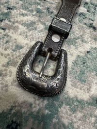 VINTAGE SILVER BUCKLE LEATHER WESTERN BELT