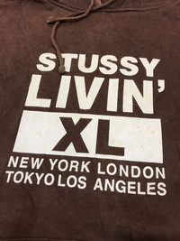 AUTHENTIC STUSSY NEW YORK LONDON TOKYO LOS ANGELES SEASONES BROWN COLOR PRE-OWNED DEFECT - SEASONED CAN FIT XL PIT TO PIT = 25” LENGTH = 30" SLEEVES: 26.5" FREE TRACKING NUMBER PLEASE REFER TO IMAGES SHIPPING AND CONDITIONS Accepted and most preferred payment is PAYPAL! For other payment methods contact me before buying! Your item will be shipped via DHL EXPRESS. Shipping cost includes handling and shipping cost Please contact me for any questions that you may have about this item and our transaction! If you have any problems during or after the transaction contact me first, without opening a case or leaving negative feedback, and it will be solved. Thanks for looking!