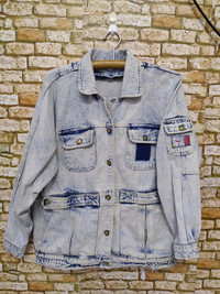 VTG ADIDAS DENIM ACID WASHED DISTRESSED JACKET (B550)