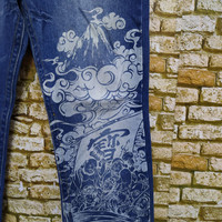 WAIST 34 INCH FRONT RISE 11.5 INCH INSEAM 32 INCH OUTSEAM 43 INCH LEG OPENING 8 INCH Please refer photos, WE ACCEPT "PAYPAL" ONLY SHIPPING & HANDLING INFORMATION: I ship worldwide using REGISTERED AIR MAIL or DHL GLOBAL or DHL EXPRESS A tracking number will be provided Usually, it takes around 10-15 DAYS to arrive worldwide.
