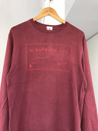 PLEASE READ BEFORE BUY!! THIS IS USED CLOTHING!!! PLEASE DONT EXPECT IT TO BE LIKE NEW OR IN PRISTINE CONDITION. ๐ฅ Brand: bape Measurement : Armpit to armpit = 20inches Length = 27Inches Sleeve Length (from Shoulder) = 26inches Condition : Used.Good Vintage condition. PLEASE REFER PIC CAREFULLY! All measurements are taken with the garment flat on the ground ATTENTION : Please pay close attention to measurements provided. Do not rely on tag size as pre-worn items may have been altered, stretched or shrunk & vintage sizes do not directly translate the modern sizes.The best way to ensure a correct fit is to compare our measurements with the measurements of a similar item that you know fits you well. And please take note,** i will not accept return if u cant fit it. As i already give my manual measurement. Please enlarge the photos for clearer image. ** Please do not expect the shirt in mint condition unless stated.Its because vintage and used items may have sign of wear.fac I only accept PayPal. The item will be sent within 1-3 days after payment is completed. Please contact me for more details photos or any question before purchase any items to ensure all our buyer satisfied with the items. Thank You and Happy Shopping! โโโโโโโโโโโโโโโโโโโโ- - [ ]