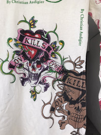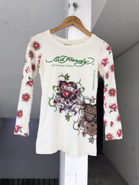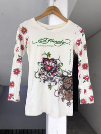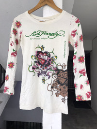 PLEASE READ BEFORE BUY!! THIS IS USED CLOTHING!!! PLEASE DONT EXPECT IT TO BE LIKE NEW OR IN PRISTINE CONDITION. π₯ Brand: ed hardy Measurement : Armpit to armpit = 15inches Length = 25Inches Sleeve Length (from Shoulder) = 21inches Condition : Used.Good Vintage condition. Stain , neck got some damaged PLEASE REFER PIC CAREFULLY! All measurements are taken with the garment flat on the ground ATTENTION : Please pay close attention to measurements provided. Do not rely on tag size as pre-worn items may have been altered, stretched or shrunk & vintage sizes do not directly translate the modern sizes.The best way to ensure a correct fit is to compare our measurements with the measurements of a similar item that you know fits you well. And please take note,** i will not accept return if u cant fit it. As i already give my manual measurement. Please enlarge the photos for clearer image. ** Please do not expect the shirt in mint condition unless stated.Its because vintage and used items may have sign of wear.fac I only accept PayPal. The item will be sent within 1-3 days after payment is completed. Please contact me for more details photos or any question before purchase any items to ensure all our buyer satisfied with the items. Thank You and Happy Shopping! ββββββββββββββββββββ- - [ ]