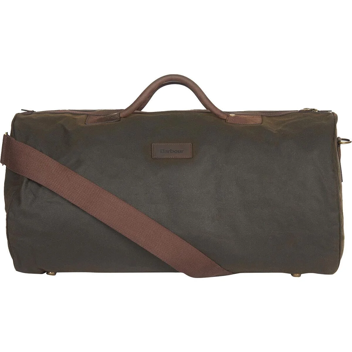 Barbour has been creating rugged, high-quality cotton goods for 120 years, and the Wax Holdall Duffel is certainly no exception. Made from robust, weather-resistant waxed cotton with genuine leather handles and trims, this bag is brilliantly built and timelessly stylish, Tartan lining and antique brass fittings lend a classic look, while two internal zippered pockets store valuables or small items. The cavernous interior is the ideal size for overnight stays, so bundle up your belongings and set out for a misty weekend on the coast or in the lush countryside. Details - A rugged, handsome duffel ideal for weekend trips - Robust waxed cotton fabric provides weather resistance - Leather trims and antique brass fittings add timeless style - Tartan lining with two zippered internal pockets - Item #BAO0019 Tech Specs Material: [face fabric] waxed cotton, [lining] cotton, [trim] leather Volume: 57.7L (3521cu in) Shoulder Strap: yes, detachable Pockets: 2 internal zip Closure: zip Dimensions: 23.6 x 12.2 x 12.2in Claimed Weight: 2lb 12.5oz Manufacturer Warranty: 1 year