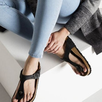 The Birkenstock Women's Gizeh Leather Sandals pair well with just about everything in your summer wardrobe thanks to their goes-with-everything style. The cork footbed molds to your foot for a feel that only gets comfier with time while the flip-flop look gives you carefree style. Wear the Gizeh around the house when you just want to feel good or don it at work when you want summery fashion that looks just as good as it feels. Details - A sandal that looks chic with just about any outfit - Leather upper provides a classic look - Cork footbed molds to the shape of your foot - EVA sole provides a comfortable feel - Item #BRK003Y Tech Specs Upper Material: leather Last: regular/wide Arch Support: yes Midsole: cork Sole: EVA Closure: slip-on Style: flip-flop Claimed Weight: [single, size 6] 6.5oz