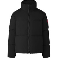 Winter in the city is less bitter when zipped inside the Canada Goose Lawrence Puffer Jacket. Responsibly sourced down keeps our body heat from dissipating, while the treated exterior ensures the fresh flakes dusting our shoulders won't soak through. Details - Toasty down jacket for roaming and commuting in wintry conditions - Recycled material is soft, durable, water-repellent, and eco-friendly - Lofty down insulation holds warm air inside to combat cold temps - Tall collar, recessed ribbed cuffs, and drop-tail hem help trap in heat - Two-way front zipper offers venting and style versatility - Reflective rear double-strip grab strap increases your visibility - Internal backpack straps for a hands-free carry when not wearing - Two zip hand pockets and three internal pockets to stash the day's essentials - Item #CDGZ0DS Tech Specs Responsible Collection: Recycled/Repurposed, Responsibly Sourced Material: 100% recycled nylon, water-repellent treatment Insulation: 750-fill responsibly sourced down (90% down, 10% feathers) Fit: regular Length: hip Hood: none Pockets: [external] 2 zippered hand, [internal] 2 mesh drop-in, 1 zippered security Venting: two-way front zipper Thumbholes: none Activity: casual Manufacturer Warranty: lifetime