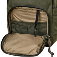The Filson Dryden Backpack is a rugged, water resistant workhorse that we rely on. The heavy-weight fabric provides long-term durability, and it's water-resistant to protect our things from surprise showers and flurries. We like the rugged interior and the organized interior to get us through our commutes and everyday routines. Details - Rugged everyday backpack - Cordura nylon is abrasion- and water-resistant - Bridle leather tabs and grab handle for durability - Internal and external pockets for organization - Rear trolley strap fits rolling luggage handles - Meets major airlines carry-on size requirements - Imported - Item #FSNI0EH Tech Specs Material: 1000D nylon Volume: 25.5L Shoulder Straps: paired Waist Belt: none Access: front panel zipper Pockets: [external] 1 zippered front, 2 stow side, 1 zippered rear panel, [internal] 1 zippered mesh Dimensions: 18 x 12.75 x 7in Activity: casual