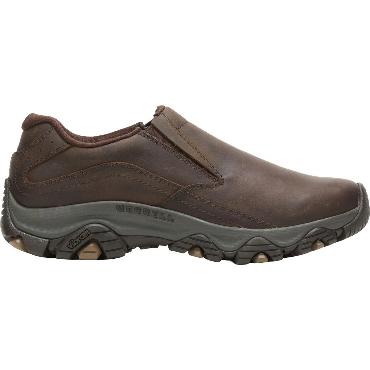 What Our Gearhead® Experts Are Saying:"These slip-ons are shockingly capable. They fit like a comfy casual moc but have the same stability and traction you get from Merrell’s Moab line. The Vibram TC5+ outsole grips really well, and the Air Cushion heel makes them great for long days on your feet. They’re the pair I grab for travel or quick walks around town."We reach for the Merrell Moab Adventure 3 Moc when we want the ease of a slip-on paired with the comfort, stability, and traction of a trail shoe. Built with a waterproof full-grain leather upper, this moc keeps us ready for changing weather and daily movement without sacrificing style. The double stretch gore makes on-and-off effortless, while the recycled microfiber lining and recycled mesh footbed cover boost breathability and comfort throughout the day. Underfoot, Merrell’s Super Rebound Compound midsole cushions each step and smooths transitions, and the Air Cushion heel absorbs shock when we’re navigating city streets or uneven paths. The molded nylon arch shank adds stability, and the Vibram TC5+ outsole delivers the reliable traction we expect from the Moab family. Whether we’re commuting, traveling, or exploring close to home, the Moab Adventure 3 Moc keeps things comfortable, durable, and ready for whatever the day brings.