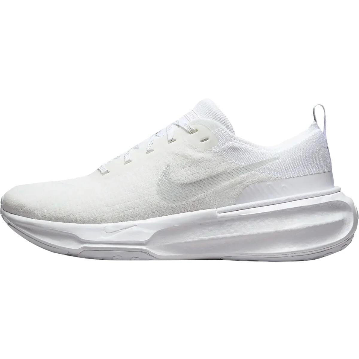 The ZoomX Invincible Run FK 3 Shoe keeps us light on our feet when on the treadmill or on the street. Its stretch-woven Flyknit upper is sock-like, so it's ultra comfortable when we're on a run or casual hike. Details - Road running shoe for supreme support on hard surfaces - Maximum cushioning keeps you bounding forward - Seamless upper is sock-like and breathable - Waffle rubber sole grips the ground beneath you - Item #NKEW1KR Tech Specs Upper Material: Flyknit synthetic Waterproofing: none Lining: synthetic Closure: lace Footbed: moderate arch Midsole: ZoomX foam (EVA) Sole: waffle rubber Last: semi-curved Support Type: neutral Cushion: maximum Heel / Forefoot Height: 40mm / 31mm Drop: 9mm Claimed Weight: [single] 9oz Manufacturer Warranty: 2 years Activity: road running, training