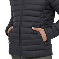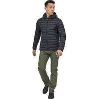 We zip into Patagonia's Down Sweater Hooded Jacket to avoid the shivers on portaledges and in snow bivvies. Water-shedding fibers and heat-trapping down keep us cozy, while the elastic bound cuffs and cinchable hem seal out drafts. When on the move, we cinch the insulated hood over our head to shield our neck and ears from nipping winds. Details - Toasty, packable puffy jacket for wintry mountains and towns - Lightweight recycled ripstop resists tears and blocks winds - Water-resistant finish fends off drizzles and flurries - Lofty responsibly sourced down delivers eco-friendly warmth - Zips into own internal chest pocket for compact stashing - Item #PATZA1V Tech Specs Responsible Collection: Recycled/Repurposed Material: 100% recycled polyester ripstop, DWR finish Insulation: 800-fill Advanced Global Traceable Down (NSF International certified goose down) Fill Weight: 150g Fit: contoured Length: hip, cinchable hem Center Back Length: [medium] 26.5in Hood: fixed, single-pull cord adjustment Pockets: [external] 2 zippered handwarmer, [internal] 1 zippered chest (packable, carabiner clip-in loop) Claimed Weight: 15.1oz Activity: casual, hiking, backpacking, all-mountain skiing, all-mountain snowboarding, climbing Manufacturer Warranty: lifetime