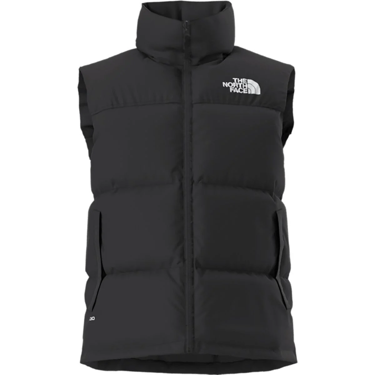 Inspired by The North Face's 1996 Nuptse, the 1996 Retro Nuptse Vest brings throwback style to our look and is versatile enough for our adventures around the city or on the trail. Its lofty goose down insulation traps your body heat for reliable warmth on cold winter days, and the durable face fabric is water-resistant to keep you dry if flakes start to fall. The hood protects your face from the wind, but can be easily stowed into the collar when the weather is fair, while an adjustable hem cinch blocks chilly air from entering your layers. Details - Retro-inspired vest for city or trail - Lofty goose down insulation traps body heat for reliable warmth - Water-resistant fabric fends off light drizzles and flurries - Oversized baffles prevent down migration - Hood packs into collar for versatility - Two-way zipper makes getting in and out of car easy - Hem cinch blocks cold air from permeating into layers - Item #TNF04R2 Tech Specs Material: [face fabric] (solid) 100% nylon ripstop DWR, (heather) 100% polyester DWR, (metallic) 100% polyester DWR, [yoke] 100% nylon DWR, [lining] 100% nylon Insulation: 700-fill goose down Fit: regular/relaxed Length: hip Center Back Length: 26in Pockets: [external] 2 hand, [internal] 1 secure-zip Hood: no Claimed Weight: 1lb 1.1oz Activity: casual Manufacturer Warranty: 1 year limited