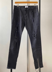 Heliot Emil Ripped Denim Pants with side Zippers