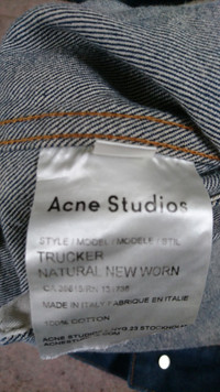 Acne Studios Blue Denim Jacket Made In Italy Size 48 fits like 46 Shoulders 46cm Pit to pit 51cm Sleeve from armpit 50,5cm Back length without collar 63cm Made in Italy! Collar tag was cut off!