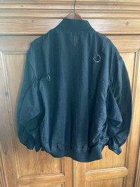 Damir Doma Mainline Silk Bomber Jacket Oversized Size L Armpit to armpit 70cm (stretched! Shoulder width 57cm Sleeve length from shoulder 58cm (not stretched!) Back length without collar 72cm 72% Real silk (!) 28% Polyamide As good as new condition except for one small ring falling off the back, see picture! Rare!