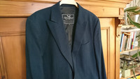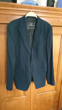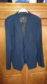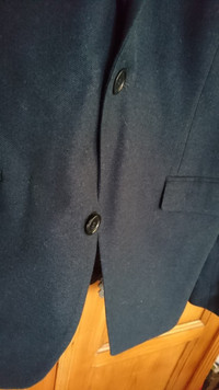 Unconditional blazer It is a dark blue colour and is made from 50/50 cotton and wool blend. It is a single breasted jacket with 2 button fastening, single breast and 2 waist pockets, with single vent back. It has a black lining with the trademark Unconditional wing design and contrast hand-stitch in white. There is a nice 5 button detail on the cuff. The label size is Small (equivalent of EU46/36 chest), but approx flat measurements are as follows: Armpit to armpit 49cm Shoulders 43cm Sleeve length from shoulders 67cm Back length in middle 72cm