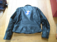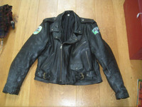 Vintage Hand Painted Motorcycle Perfecto Biker Leather Jacket RARE & UNIQUE - Size 46 (M-L) pit to pit is approx. 22.5", from shoulder to shoulder is approx. 20", length of sleeve is approx. 26.5" and length from nape of neck to back hem is 24.5". - 100% real hard stiff leather - 3x hand painted motives!!!