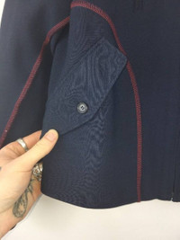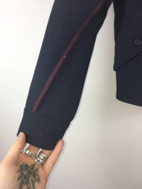 Yang Li Contrast-Seam Virgin Wool Harrington Jacket Size EU46 -Concealed zip fastenings at front -Collar, long sleeves with overlock seam detailing, two buttoned flap pockets at sides,patch pocket with flap at chest, two zip pockets at chest, contrasting over-locked seam detailing, fully lined -60% viscose, 40% virgin wool -Dry clean -Made in Italy Like new condition. Sold out!