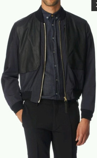 Paul Smith Mainline Panelled Bomber Jacket Colour: Black-Navy Material: Leather-Nylon Size Medium. Slim and cropped fit, very on trend. Measurements in inches. Pit to pit 21 Back length 26 Outer sleeve length 26 Made in Italy! Retails €1361 at Selfridges.
