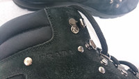 PRADA Black Suede Velour Hiking Leather Boots Size UK7 Middle outsole length 30cm (11,8") It has a coated patina at some parts! Good condition! Please select Euro at the checkout. Thank you