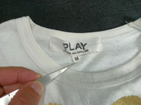 Comme des Garcons PLAY CDG Cotton Big Logo T-shirt Pre-owned in good condition. (please see the pictures for details) MEASURES ABOUT (APPROXIMATELY) # ARMPIT TO ARMPIT: 16 INCH # LENGTH (BACK COLLAR DOWN): 22 INCH # SIZE ON TAG : M (fit to saiz XS) # MATERIAL : 100% COTTON # MADE IN JAPAN NOTE : (please see the pictures for details) Ship to worldwide • All items will be shipped out within 1-3 days after payment received. • Usually, it takes about 18 - 24 business days for delivery for all International order. Sometimes, It may take up to 24 working days. However after 30 days your item still not arrive, please contact us immediately. • For Holiday Period (eg: Christmas, Chinese New Year and etc), shipping will take longer time to • reach. Please be patient when awaiting shipment. PAYMENT PayPal ONLY All winning buyers are expected to pay within 3 days. Please provide telephone number after purchased. I need to fill the postage form for delivery process. NO REFUND NO RETURN ( Please Make sure you read the description and look at this picture before making a payment) VISIT MY STORE FOR MORE ITEMS...THANKS