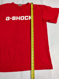 G-Shock RED T-Shirt rare Pre-owned in good condition. (please see the pictures for details) MEASURES ABOUT (APPROXIMATELY) # ARMPIT TO ARMPIT: 21.5 INCH # LENGTH (BACK COLLAR DOWN): 27 INCH # SIZE ON TAG : L # MATERIAL : 100% COTTON NOTE : (please see the pictures for details) Ship to worldwide • All items will be shipped out within 1-3 days after payment received. • Usually, it takes about 18 - 24 business days for delivery for all International order. Sometimes, It may take up to 24 working days. However after 30 days your item still not arrive, please contact us immediately. • For Holiday Period (eg: Christmas, Chinese New Year and etc), shipping will take longer time to • reach. Please be patient when awaiting shipment. PAYMENT PayPal ONLY All winning buyers are expected to pay within 3 days. Please provide telephone number after purchased. I need to fill the postage form for delivery process. NO REFUND NO RETURN ( Please Make sure you read the description and look at this picture before making a payment) VISIT MY STORE FOR MORE ITEMS...THANKS