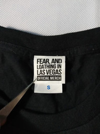 Fear and Loathing in Las Vegas tee. Pre-owned in excellent condition. (please see the pictures for details) MEASURES ABOUT (APPROXIMATELY) # ARMPIT TO ARMPIT: 17.5 INCH # LENGTH (BACK COLLAR DOWN): 25 INCH # SIZE ON TAG : S # MATERIAL : 100% COTTON NOTE : (please see the pictures for details) Ship to worldwide • All items will be shipped out within 1-3 days after payment received. • Usually, it takes about 18 - 24 business days for delivery for all International order. Sometimes, It may take up to 24 working days. However after 30 days your item still not arrive, please contact us immediately. • For Holiday Period (eg: Christmas, Chinese New Year and etc), shipping will take longer time to • reach. Please be patient when awaiting shipment. PAYMENT PayPal ONLY All winning buyers are expected to pay within 3 days. Please provide telephone number after purchased. I need to fill the postage form for delivery process. NO REFUND NO RETURN ( Please Make sure you read the description and look at this picture before making a payment) VISIT MY STORE FOR MORE ITEMS...THANKS
