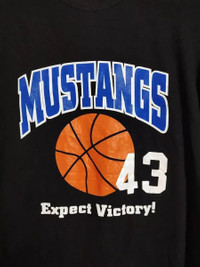 Vintage Mustangs basketball made USA Pre-owned in good condition. (please see the pictures for details) MEASURES ABOUT (APPROXIMATELY) # ARMPIT TO ARMPIT: 24 INCH # LENGTH (BACK COLLAR DOWN): 29.5 INCH # SIZE ON TAG : XL # MATERIAL : 100% COTTON # MADE IN USA NOTE : (please see the pictures for details) Ship to worldwide • All items will be shipped out within 1-3 days after payment received. • Usually, it takes about 18 - 24 business days for delivery for all International order. Sometimes, It may take up to 24 working days. However after 30 days your item still not arrive, please contact us immediately. • For Holiday Period (eg: Christmas, Chinese New Year and etc), shipping will take longer time to • reach. Please be patient when awaiting shipment. PAYMENT PayPal ONLY All winning buyers are expected to pay within 3 days. Please provide telephone number after purchased. I need to fill the postage form for delivery process. VISIT MY STORE FOR MORE ITEMS...THANKS