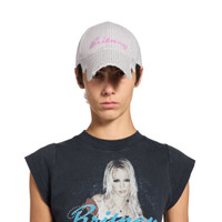 Balenciaga Music | Britney Spears Series Cap in dirty white and pink cotton drill is an exclusive release from Balenciaga Spring 26 Collection. PRODUCT DETAILS • Cotton drill • Allover rhinestones • Worn-out details • Classic baseball cap shape • Ventilation eyelets embroidered on top • Adjustable hook and loop tab at back • Visor cut out on both sides • Britney artwork printed on front • Made in Italy Main material: 100% cotton