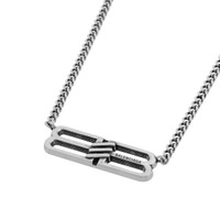 BB Icon Necklace in antique silver brass PRODUCT DETAILS • Dimensions : L1,3 x H10,6 x W0,1 inch • Brass • Chain necklace • BB Icon logo • Balenciaga logo engraved • Adjustable chain • Clasp closure • Made in Italy • Wipe with a soft cloth Material: 100% brass