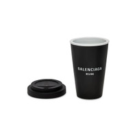 Cities Beijing Coffee Cup in black porcelain PRODUCT DETAILS • Dimensions: H5,1 x Ø3,5 inch • Capacity : 30 cl • Porcelain • Balenciaga logo at front • 1 lid made of thermoplastic elastomer • Made in China • Hand wash Material: 100% porcelain - 83 % TPE, 17% polypropylene