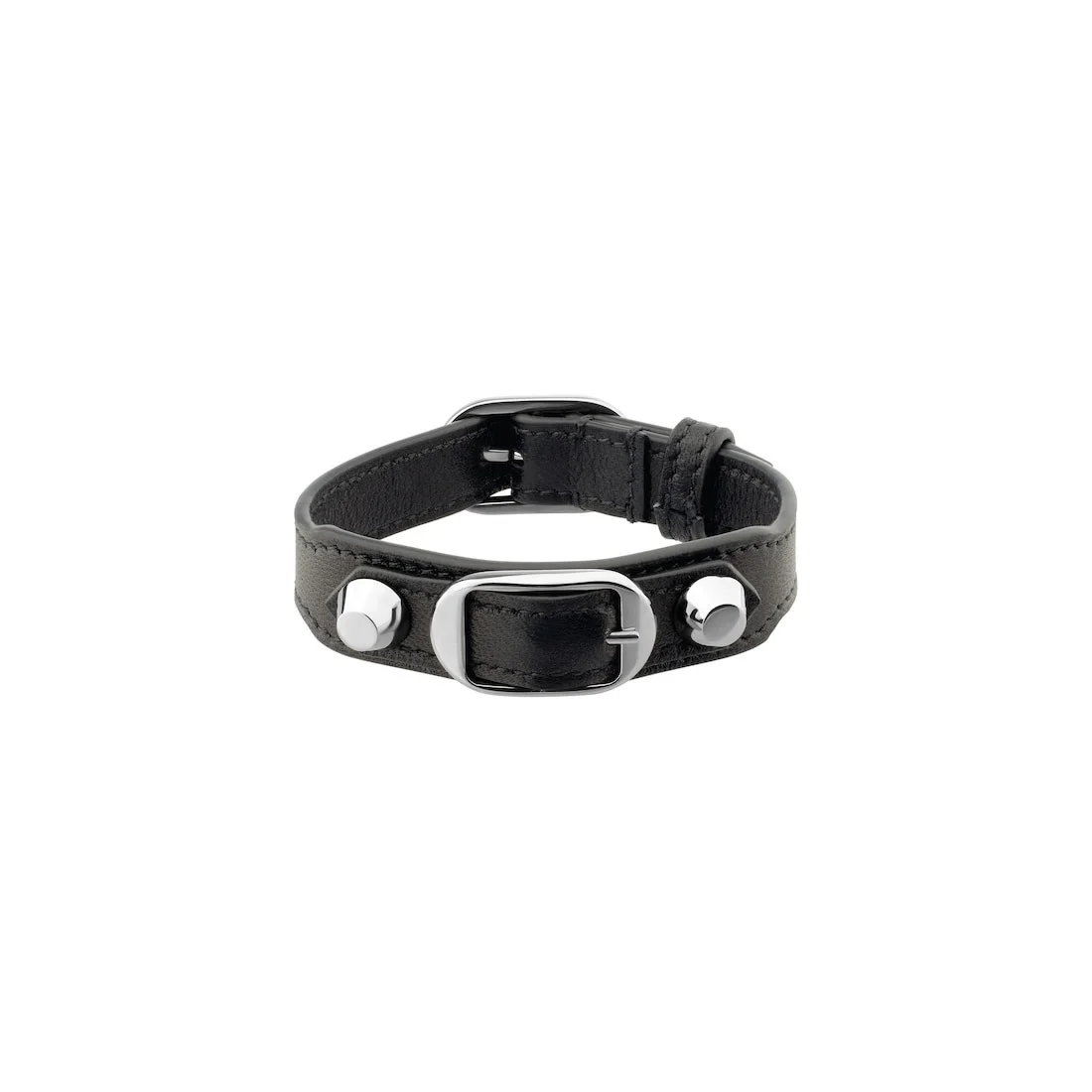 City Bracelet in black Arena storico lambskin and shiny silver brass PRODUCT DETAILS • Dimensions: L9,85 x H0,75 x W0,4 inch • Arena Storico lambskin and brass • Single tour bracelet • Shiny silver studs • Adjustable closure • Made in Italy • This item is nickel-free, lead-free, and hypoallergenic Material: lambskin, brass