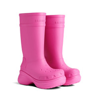 Crocs™ Boot in bright pink rubber PRODUCT DETAILS • Rubber • Boot • Round toe • 20mm arch • Balenciaga logo debossed at front • Embossed size at back • Made in China • Crocs™ collaboration • Wipe with a soft cloth Material: 100% EVA