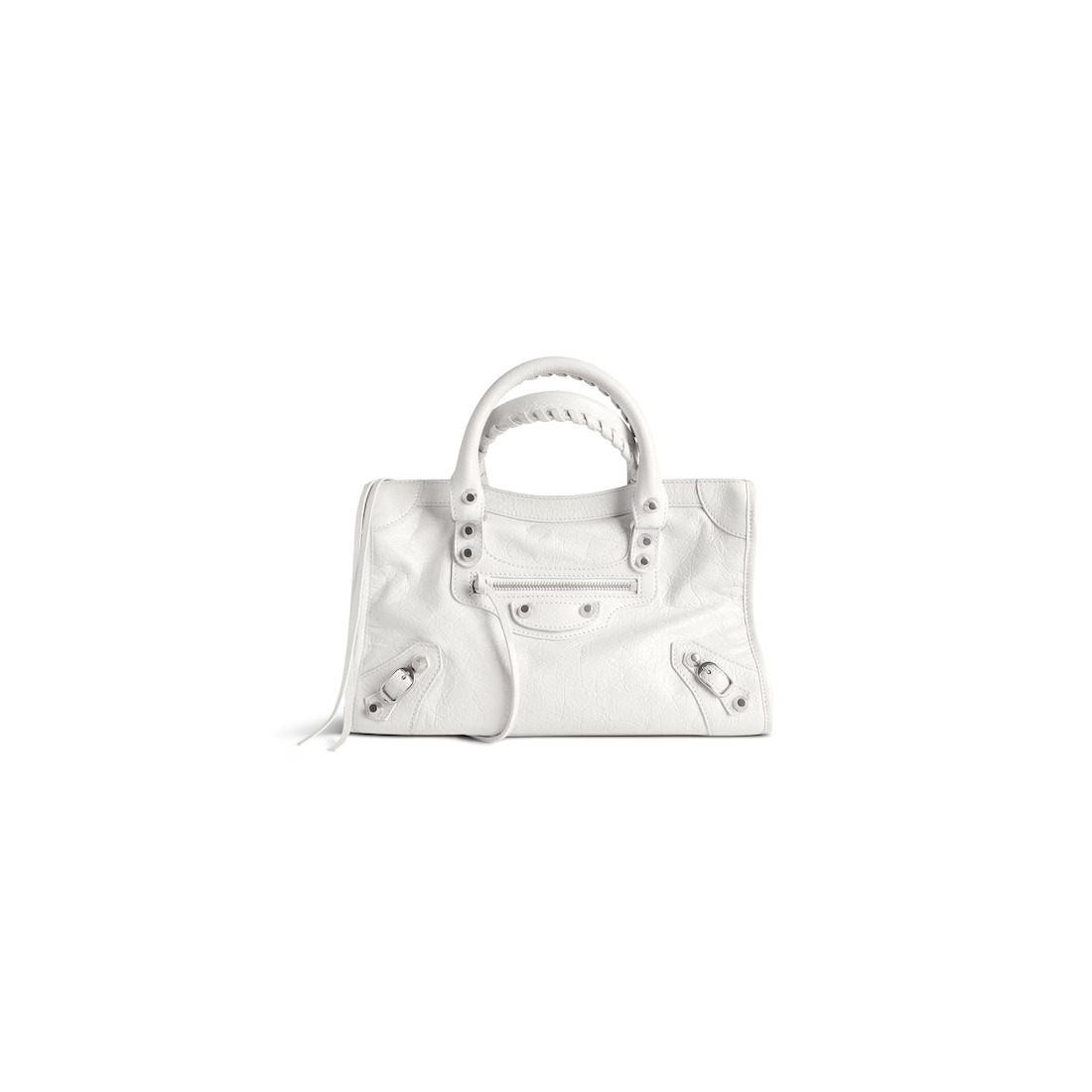 Le City Bag Small in optic white Arena lambskin, shiny silver hardware PRODUCT DETAILS • Dimensions: L11,8 x H7,5 x W3,9 inch • Arena lambskin • Two leather hand-braided handles • Removable and adjustable shoulder strap (drop: 19,7 inch) • Shiny silver hardware • Zipped closure with knotted leather puller • Front zipped pocket with knotted leather puller • 1 inner zipped pocket • Cotton canvas lining • Made in Italy Material: lambskin