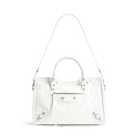 Le City Medium Bag in white Arena lambskin, shiny silver hardware PRODUCT DETAILS • Dimensions: L14,6 x H9,2 x W5,9 inch • Arena lambskin • Two leather hand-braided handles • Removable shoulder strap (drop: 13,4 inch) • Shiny silver hardware • Zipped closure with knotted leather puller • Front zipped pocket with knotted leather puller • 1 inner zipped pocket • Cotton canvas lining • Made in Italy Material: lambskin