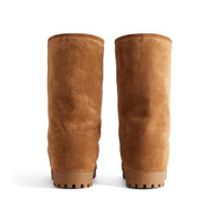 Alaska Fur High Boot in brown split calfskin and white synthetic material is from several looks of Balenciaga Fall 24 Collection. PRODUCT DETAILS • Split calfskin and synthetic material • High boot • Extra round toe • Thick rubber sole • Exaggerated proportions • Balenciaga logo and details stamped at back • Made in Italy Material: calfskin