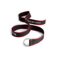 D Ring Belt in black and red webbing PRODUCT DETAILS • Dimensions: Width: 1,6 inch • Polyester • Jacquard Balenciaga logo • Aged-silver hardware • Adjustable closure • Made in Italy Material: polyester