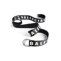 D Ring Belt in black and white webbing PRODUCT DETAILS • Dimensions: Width: 1,6 inch • Polyamide and polyester • Unity sports icon artwork • Jacquard Balenciaga logo • Metal tip with Balenciaga logo engraved • Aged-silver hardware • Adjustable closure • Made in Italy Material: polyamide, polyester