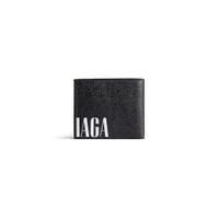 Editor Square Folded Wallet in black vintage Arena Storico lambskin PRODUCT DETAILS • Dimensions: L4,5 x H3,7 x W0,6 inch • Vintage Arena Storico lambskin • Square folded wallet • Balenciaga logo printed at front and back • 8 card slots • 2 bill pockets • 2 receipt compartments • Made in Italy Material: lambskin