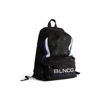 Explorer Backpack in black, blue and white cotton drill, matte black hardware PRODUCT DETAILS • Cotton drill • Backpack • One top handle • Adjustable shoulder straps • Nascar typo artwork at front • Matte black hardware • Top double-ended zip-fastening closure • Front zipped pocket • 1 inner zipped pocket • 1 inner patch pocket • BB logo engraved zipper puller with cotton string • Cotton canvas lining • Made in Italy Material: cotton, polyamide, polyester