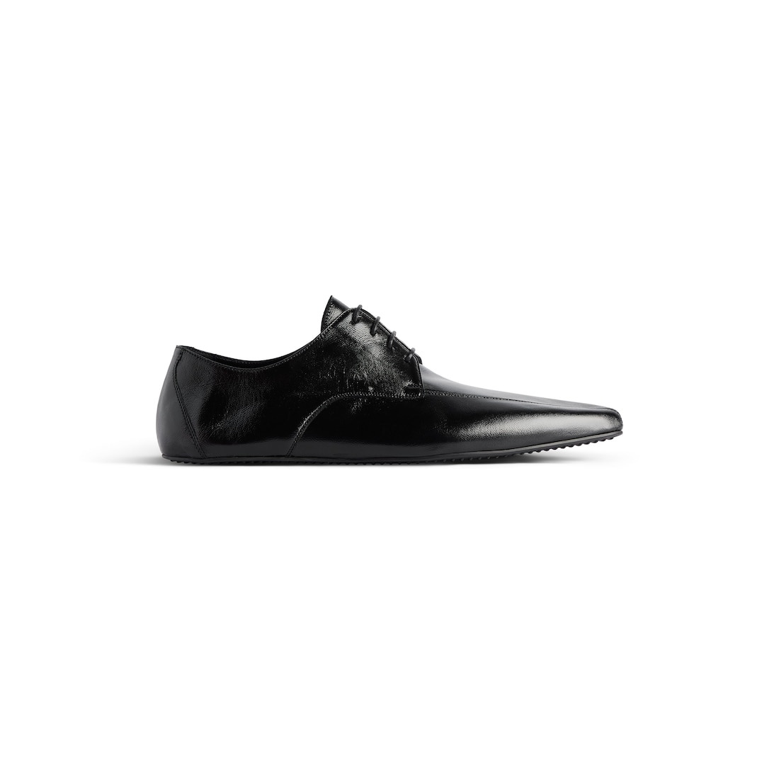 Hyperflat Derby in black supersoft goatskin is from looks 15 and 21 of Balenciaga Winter 25 Collection. PRODUCT DETAILS • Supersoft goatskin • Derby • Square toe • 4 eyelet lace-up vamp • Foldable heel counter • Rubber sole • Made in Italy Upper: goatskin - Sole: calfskin - Insole: calfskin