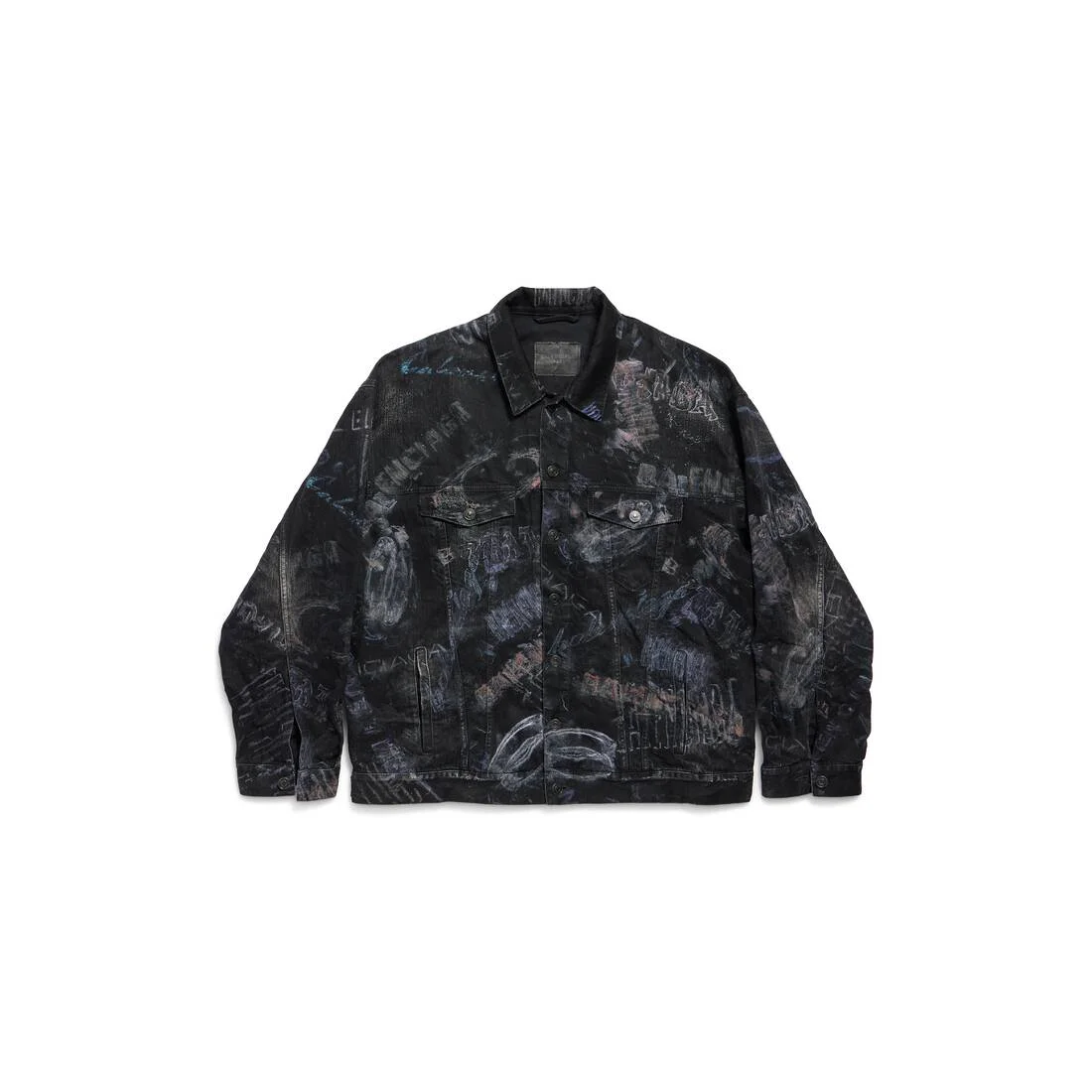 Oversized Jacket in black fade out washed crayon allover cotton denim for Men PRODUCT DETAILS • Washed crayon allover cotton denim • 7 button front • 2 buttoned pockets at chest • 2 slash pockets • Buttoned cuffs • Adjustable buttoning at waist • Balenciaga engraved flex buttons • Made in Italy Main material: 100% cotton