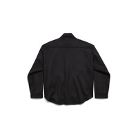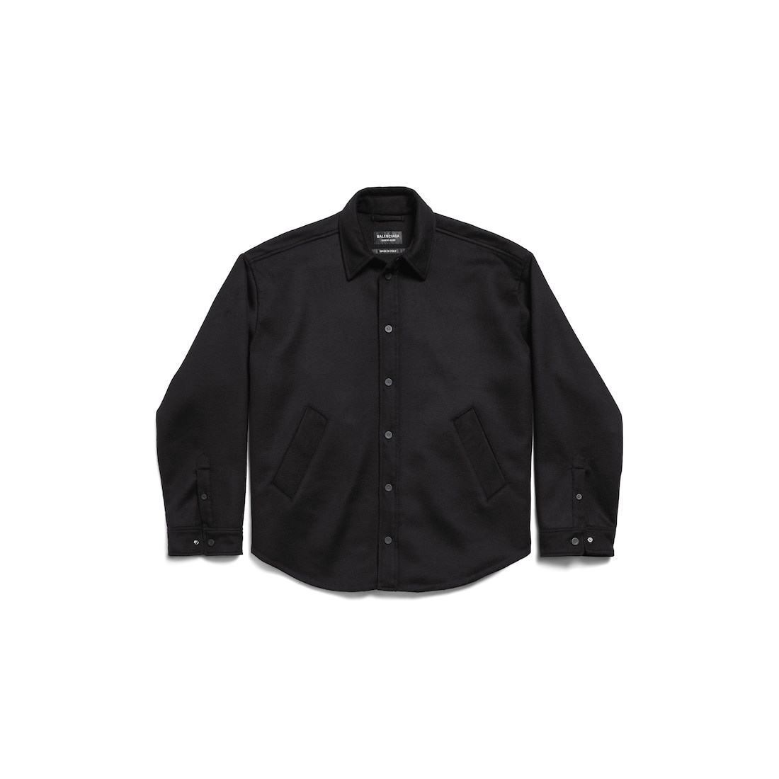 Padded Shirt in black double face wool PRODUCT DETAILS • Double face wool • Padded • Buttoned closure • Buttoned cuffs • Rounded hem • 2 slash pockets at front • Balenciaga engraved buttons • Made in Italy Main material: 100% wool