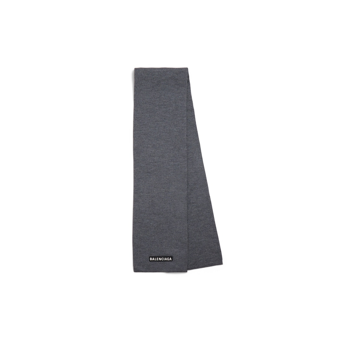 Patch Scarf in grey wool knit PRODUCT DETAILS • Dimensions: 8,6 x 72,8 inch • Wool knit • Can be doubled around the neck • Balenciaga Patch at bottom • Made in Italy Main material: 100% wool