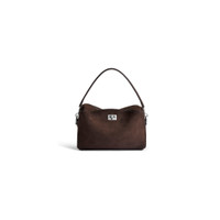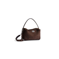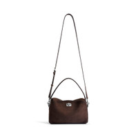 Rodeo Camera Bag in light espresso waxed suede calfskin and smooth calfskin, aged-silver hardware PRODUCT DETAILS • Dimensions: L8,8 x H6,1 x W4,1 inch • Waxed suede calfskin and smooth calfskin • Camera bag • One removable handle (drop: 3,9 inch) • Adjustable and removable strap (drop: 19,3 inch) • Crossbody, shoulder and hand carry • Front pocket at front with turn lock closure • Balenciaga logo engraved at front • Aged-silver hardware • Zipped closure • 1 main compartment • 1 inner flat pocket • 2 flat pocket at back • Nappa lambskin lining • Made in Italy Material: calfskin