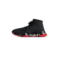 Speed 2.0 Lace-Up Sneaker in black and red recycled knit PRODUCT DETAILS • Polyester and elastane • Ultra-articulated molded clear sole unit • “No Memory” sole technology bicolor sole unit • Extra light: nearly barefoot feel • Contrasted logo printed on exterior • Embossed logo on the back of sole • Made in Italy Upper: polyester, elastan - Sole: TPU - Insole: polyamide